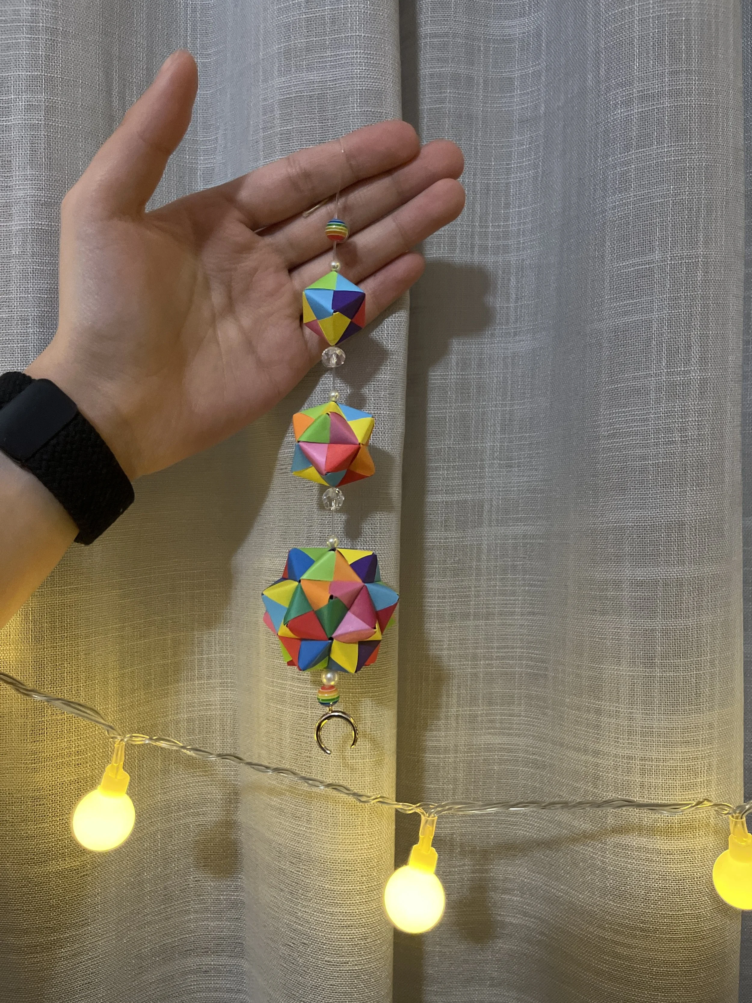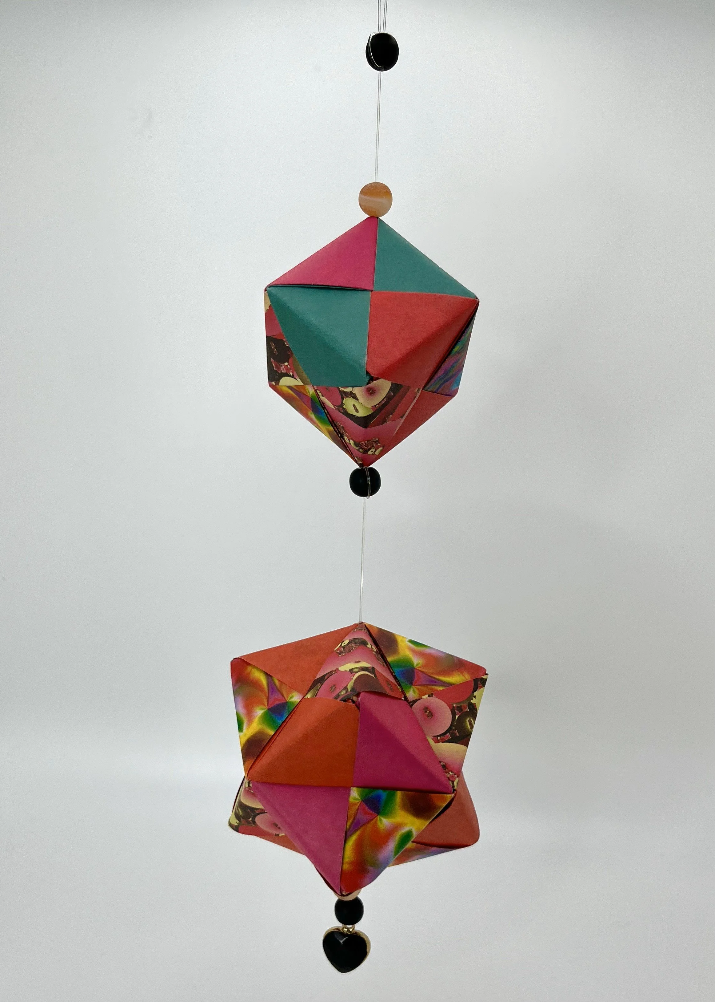 Take a look at some of my favorite mobiles that I’ve made! They range in size from mini mobiles to much larger decorative pieces. Smaller mobiles are easy to put up in any space for a little pop of color. The larger mobiles make a louder statement and allow for a lot of creativity in the color pallet.